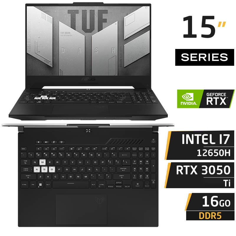 PC Portable Gamer ASUS TUF Dash F15 i7-12650H 16Go DDR5 Nvme 512Go RTX 3050Ti 4GB