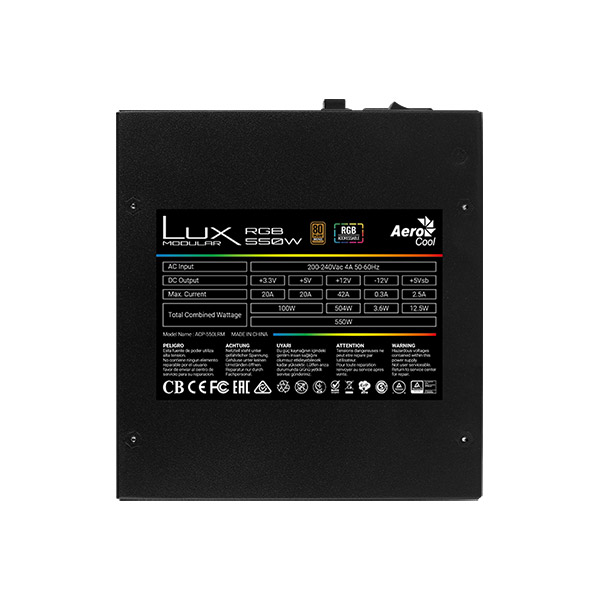 AEROCOOL LUX RGB 550W ATX MODULAIR PSU, 80+ BRONZE