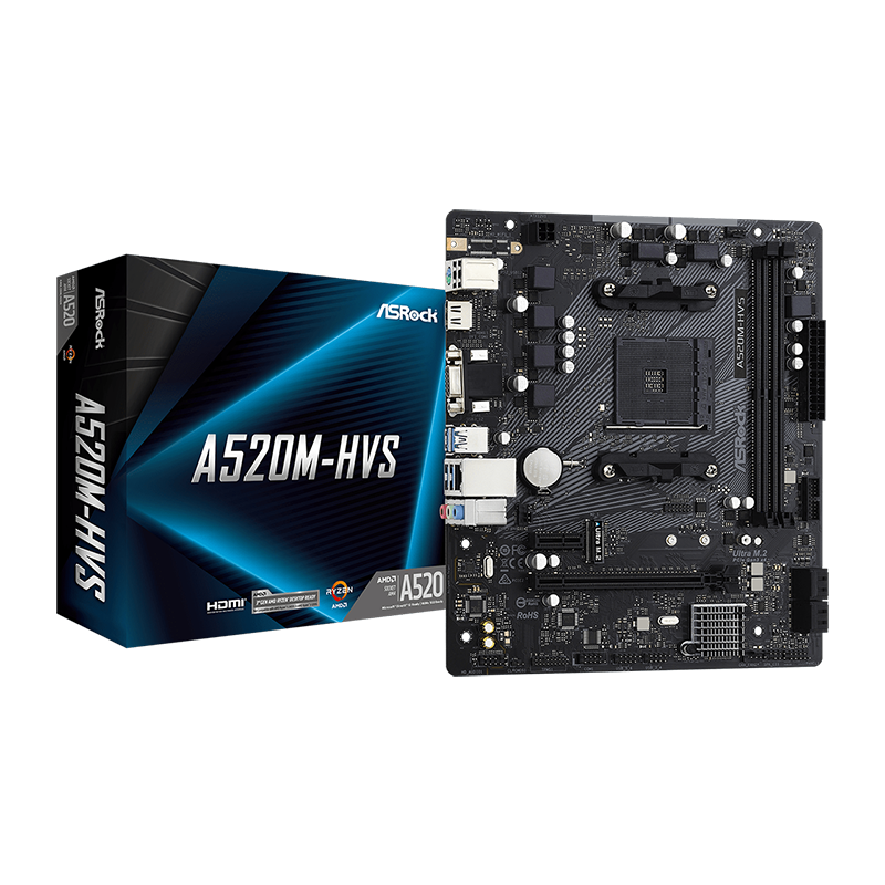 Carte mère Micro ATX Socket AM4 AMD A520 – 2x DDR4 – M.2 PCIe NVMe – USB 3.0 – 1x PCI-Express 3.0 16x
