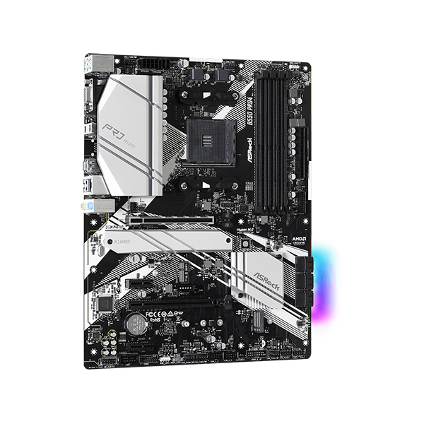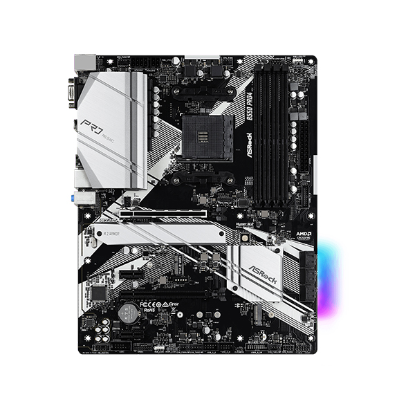 ASRock B550 Pro4 Cette carte Mère conçue pour accueillir les processeurs AMD Ryzen 3ème & 4ème génération sur socket AM4. Elle permettra d’assemblé une configuration compacte capable de faire de toutes les tâches.