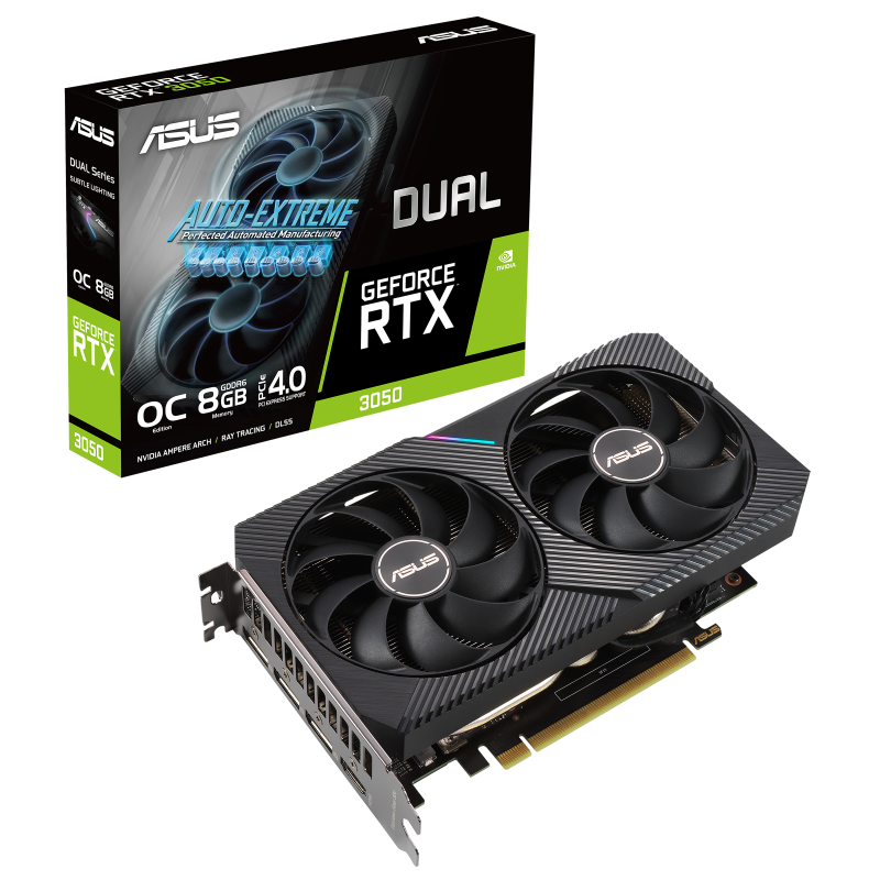 Doté de la dernière architecture NVIDIA® Ampere, ASUS Dual GeForce RTX™ 3050 allie performances thermiques dynamiques et compatibilité étendue. Les solutions de refroidissement avancées des cartes graphiques phares – y compris deux ventilateurs Axial-tech pour maximiser le flux d’air vers le dissipateur thermique – sont intégrées dans la carte à 2 emplacements de 20 cm de long, offrant plus de puissance dans moins d’espace. Ces améliorations font d’ASUS Dual le choix parfait pour les joueurs qui recherchent des performances graphiques élevées dans une construction compacte.