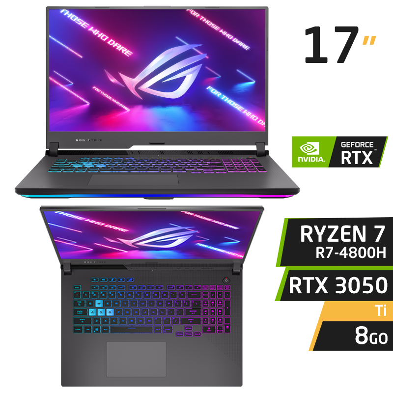 AMD Ryzen 7 4800H 8 Go SSD 500 Mo 17.3″ LED Full HD 144 Hz NVIDIA GeForce RTX 3050 ti 4 Go Wi-Fi AX/Bluetooth Windows 10