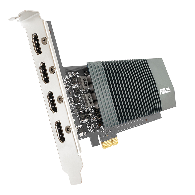 Une grande productivité dans un petit paquet , L’ASUS GeForce GT 710 2Go GDDR5 GT710-4H-SL-2GD5 est une carte graphique à un emplacement à refroidissement passif qui permet une productivité multi-écrans silencieuse.