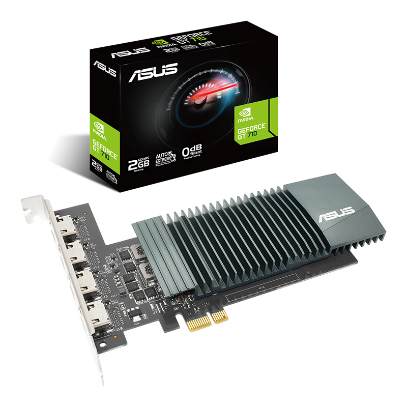 L’ASUS GeForce® GT 710 est une carte graphique à un emplacement à refroidissement passif qui permet une productivité multi-écrans silencieuse.