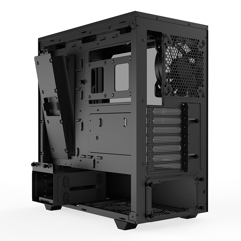 Optimisation de tous les éléments pour le flux d’air et les performances .Grâce sa façade et son panneau supérieur extrêmement perméable à l’air: le Pure Base 500DX Black est le bon choix pour tous ceux qui recherchent des performances maximales, en particulier avec des systèmes refroidis par eau. Les filtres à poussière à l’avant et en dessous sont faciles à retirer pour le nettoyage.