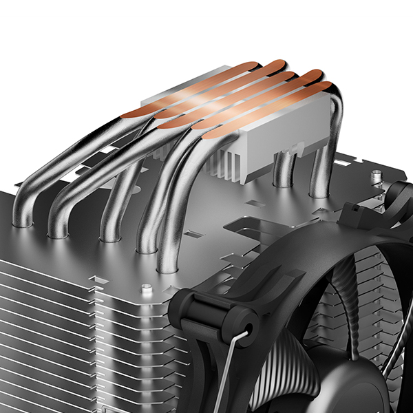 • Cinq caloducs en cuivre nickelé haute performance de 6 mm