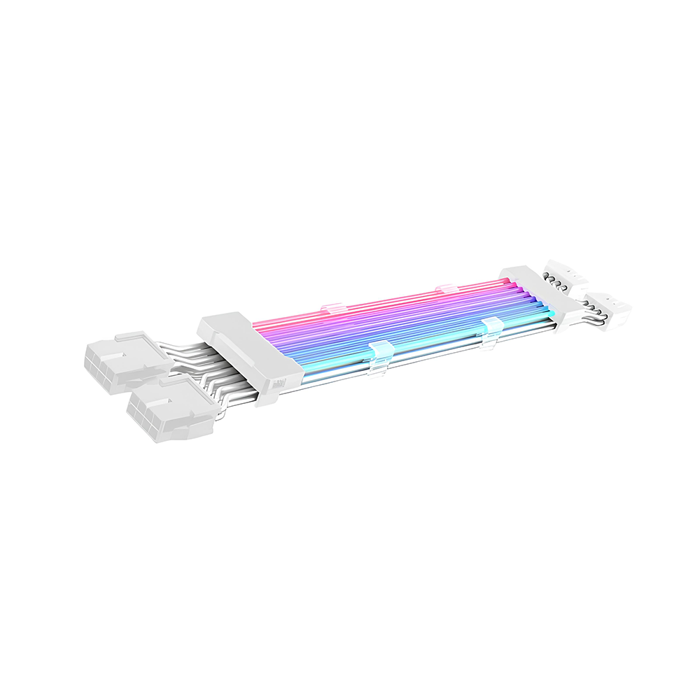 e câble extension Dual 8PIN RGB Striped White combine élégance et performance pour offrir une solution de gestion des câbles efficace et esthétique.