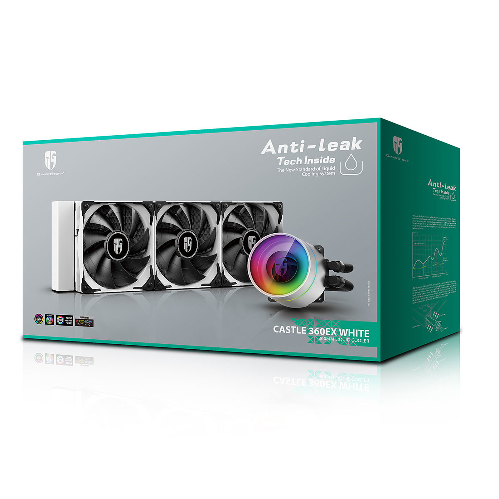 CASTLE 360EX WHITE est équipé de la technologie anti-fuite exclusive de Deepcool. La technologie aide le système à atteindre un équilibre de pression automatisé, ce qui améliorera considérablement la sécurité de fonctionnement des systèmes de refroidissement liquide AIO.Avec cette technologie, Deepcool établit une nouvelle norme pour les systèmes de refroidissement liquide.