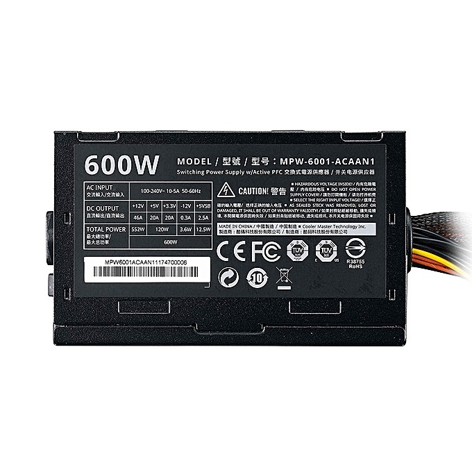 The new ATX 600W COOLERMASTER Elite V3 black power supply is a very reliable option for the PC user. The 120 mm silent fan, PCI-E bracket and 2-year global warranty provide a power supply with features and endurance you can count on. It is the perfect choice for users and applications that do not require 80 Plus efficiency to get the job done. This power supply has been designed to provide reliability with a focus on reducing random stops in low temperature conditions when power supplies are unstable. The Elite V3 is a complete solution that offers great stability in a small package at an affordable price. 75% OF EFFICIENCY The efficiency of your power supply unit is important because it directly affects the performance of your system and your energy bill. The efficiency rating does not reflect the quality or reliability of a power supply. It only reflects the unit s ability to move energy from the wall to its components. The higher the efficiency of a power supply, the lower the total amount of energy it needs to power your system. The new Elite V3 series has a typical guaranteed efficiency of 75%. ACTIVE FEED FACTOR CORRECTION A power supply unit operates by taking power directly from the wall or other fixed power source, converting it to the correct output required by the connected components, and then distributing that power to those components. If any part of this process is interrupted or executed incorrectly, the connected components and the PSU may be damaged. The active PFC uses a circuit to correct the power factor leading to a reduction in total harmonics, corrected AC input voltage and higher overall efficiency output. HIGHER TEMPERATURE RESISTANCE The new Elite V3 has a maximum operating temperature of 40°C. That s at the level of many 80 Plus certified power supply units on the market today. This higher operating temperature allows you to safely power your system in warmer environments without having to worry about the system overheating or shutting down unexpectedly. The increased heat resistance also reduces temperature-based wear, increasing the life of the unit by a significant amount.