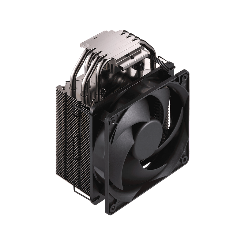 Les réseaux d’ailettes empilées garantissent la moindre résistance au flux d’air, ce qui permet à l’air plus frais de circuler dans le dissipateur thermique. Les ailettes nickelées noir de jais améliorent également les performances de refroidissement par rayonnement.