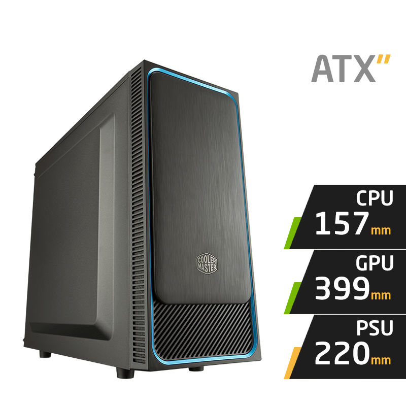 Le MasterBox E500L de Cooler Master est un boitier moyen tour qui dispose d’un thème argent. Il est compatible avec les cartes mères ATX, micro-ATX et mini-ITX.Le boîtier E500L prend en charge les refroidisseurs de processeur jusqu’à une hauteur de 157 mm, les cartes graphiques jusqu’à une longueur de 399 mm .
