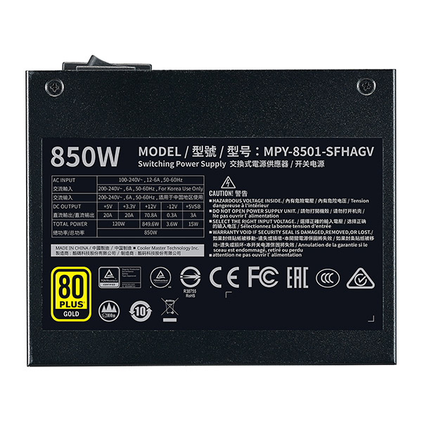 Bien que le V SFX Gold ait été conçu pour les versions mini-ITX, il peut également être utilisé pour n’importe quel boîtier ATX. Avec le support SFX vers ATX inclus, vous pouvez convertir instantanément cet appareil d’un SFX à un bloc d’alimentation ATX. Cela fait de ce produit la première unité d’alimentation de Cooler Master qui peut être utilisée pour alimenter des systèmes aussi petits que mini-ITX jusqu’aux cartes mères E-ATX. La devise de Cooler Master est « Make It Yours » et avec la compatibilité presque universelle du boîtier du V SFX Gold, vous pouvez utiliser ce bloc d’alimentation pour construire à peu près n’importe quel système que vous souhaitez.