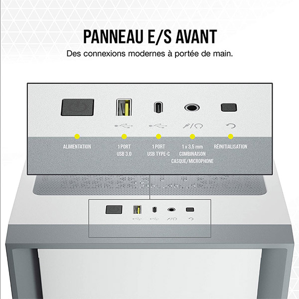 • Connectique complète en façade : 1 x USB 3.0, 1 x USB 3.1 TYPE C, ports audio,