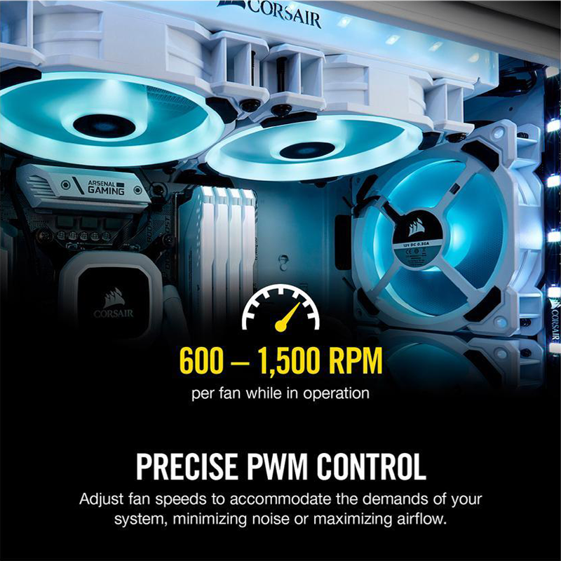 Des vitesses de rotation puissantes associées à un contrôle PWM précis garantissent que les ventilateurs refroidissent rapidement et efficacement lorsque c’est nécessaire mais restent silencieux à bas régime.