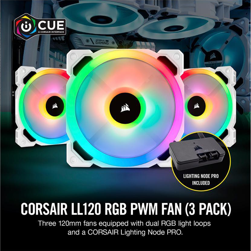 3 ventilateurs de boîtier haute performance 120 mm avec LEDs RGB + Lighting Node Pro – Blanc