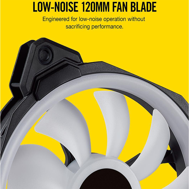 Des amortisseurs en caoutchouc intégrés aux extrémités de chaque ventilateur réduisent le bruit des vibrations dans votre boîtier, ce qui diminue le bruit des ventilateurs quelle que soit la vitesse.