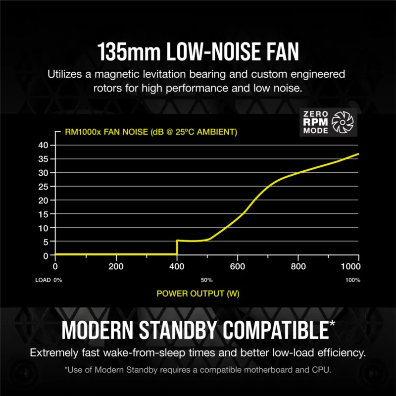 Pour une alimentation fiable et homogène et des performances électriques exceptionnelles, chaque bloc d’alimentation RMx Series dispose d’une topologie LLC robuste et résonnante avec conversion CC-CC et condensateurs électrolytiques principaux 105 °C 100 % japonais. Compatible avec le mode veille Microsoft Modern Standby pour des délais de passage, de la veille au fonctionnement, extrêmement rapides et une efficacité à faible charge améliorée.