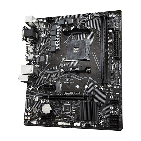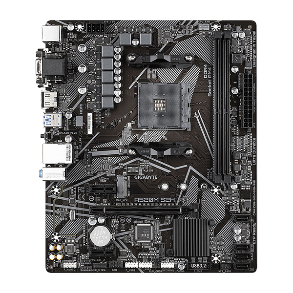La carte mère Gigabyte A520M S2H sera parfaite pour une configuration Gaming dernier cri. Conçue pour les processeurs AMD Ryzen de 3ᵉ génération et 4eme generation sur le socket AMD AM4, elle offre les dernières normes de connectivité, comme M.2 et USB 3.1 Gen 2, et dispose de plusieurs interfaces conçues pour les jeux et la lecture multimédia haut de gamme, comme HDMI, DisplayPort et DVI. Il est également préparé pour plusieurs cartes graphiques afin d’améliorer ton expérience multimédia.