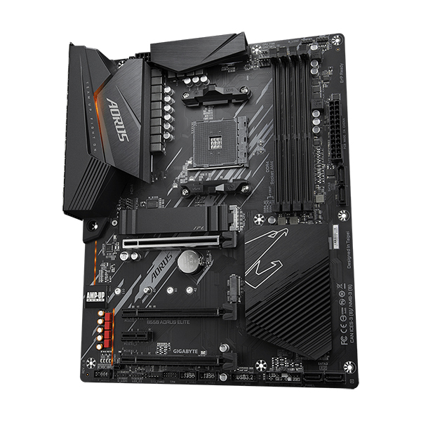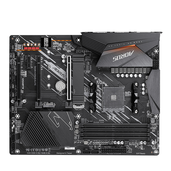 Carte mère AMD GIGABYTE B550 AORUS ELITE avec VRM numérique véritable 12 + 2 phases, dissipateurs de chaleur à surface élargie, emplacement PCIe 4.0 x 16, double PCIe 4.0 / 3.0 x4 M.2 avec une protection thermique, LAN 2.5GbE, RGB FUSION 2.0, Q-Flash Plus.