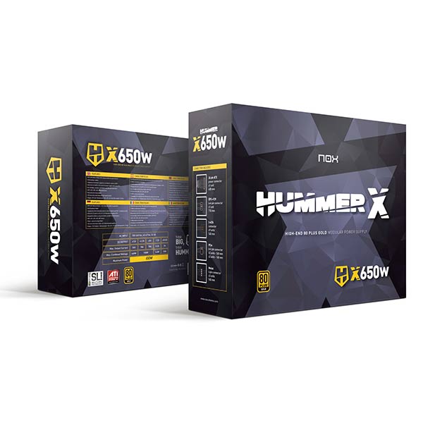 HUMMER X 650W GOLD FULL MODULAIR , sont les PSU certifiés 80 PLUS Gold de Nox. Ce sont des sources qui garantissent un rendement de 90%, conçues pour ceux qui ont besoin d’une puissance stable et d’une garantie de performance dans les équipements haut de gamme.