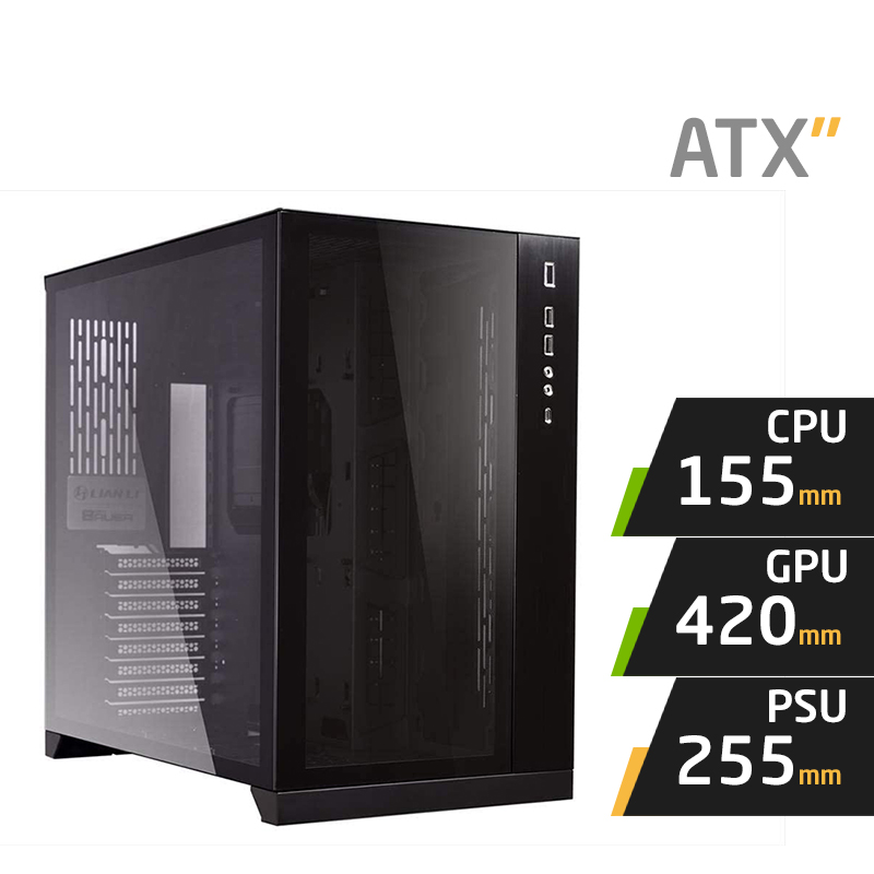 Châssis d’optimisation de l’espace, le O11 DYNAMIC PC-O11DX édition Noir est la combinaison du design moderne et de l’art. Grâce à des années de recherche, de collecte de commentaires et de refonte ; Nous avons réussi à créer la meilleure édition du châssis à double chambre. Découvrez les verres trempés avant et latéraux sans couture comme une salle d’exposition. Les deux boulons sur les pièces en acier adhérant au verre fixent facilement le panneau.