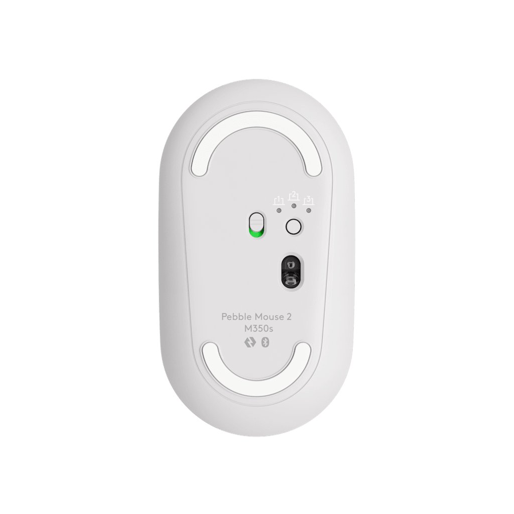 Équipée d’un capteur optique de haute précision, la Pebble Mouse 2 M350s assure un suivi fluide sur la plupart des surfaces. Elle dispose également d’un bouton central personnalisable via l’application Logi Options+, permettant d’accéder rapidement à des fonctions comme les raccourcis clavier, la gestion de la musique ou la navigation entre onglets.