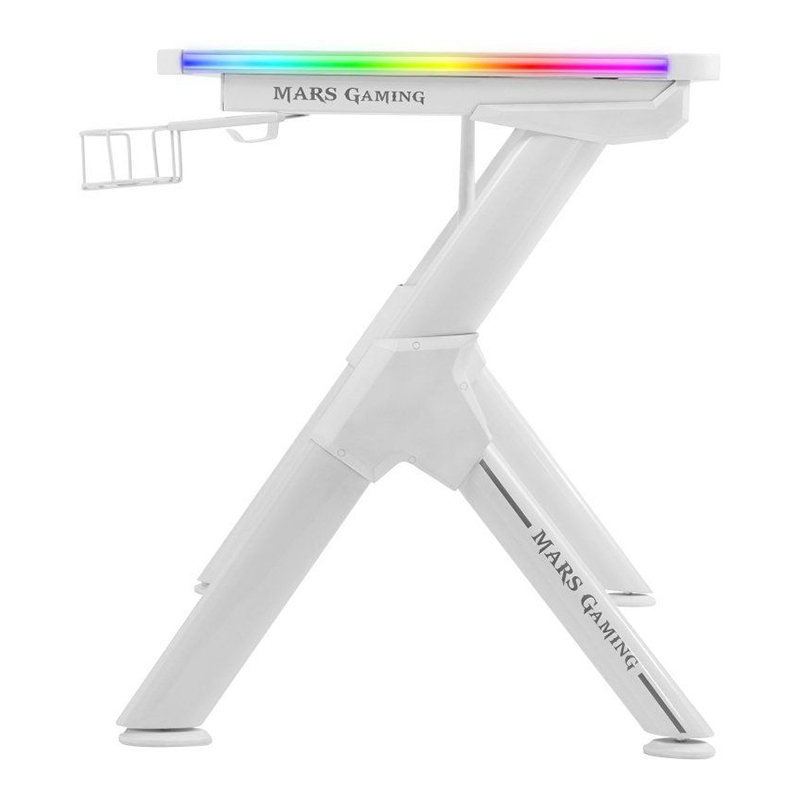 Mars Gaming MGDRGBW, Bureau Gamer RGB, Support Casque+Boissons, 110x60cm, Blanc