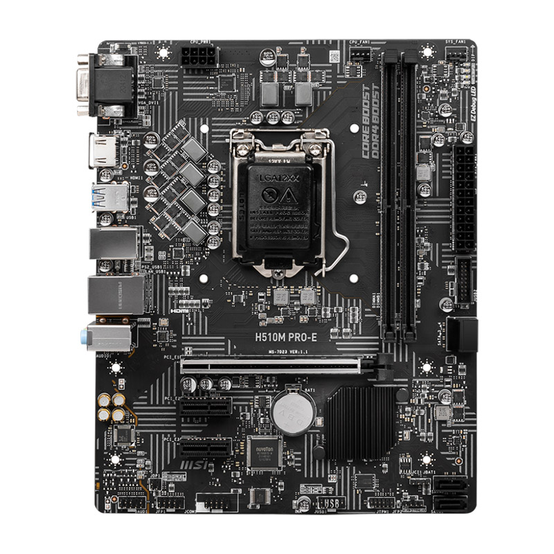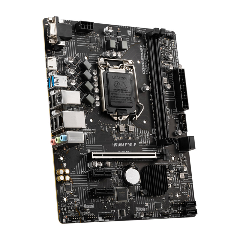 La MSI H510M PRO-E est une carte mère Micro-ATX conçue pour offrir une plateforme fiable et performante aux utilisateurs cherchant une solution abordable pour les processeurs Intel Core de 10e et 11e génération. Son chipset H510 assure une compatibilité optimale avec les dernières technologies, garantissant ainsi une excellente stabilité et efficacité énergétique.