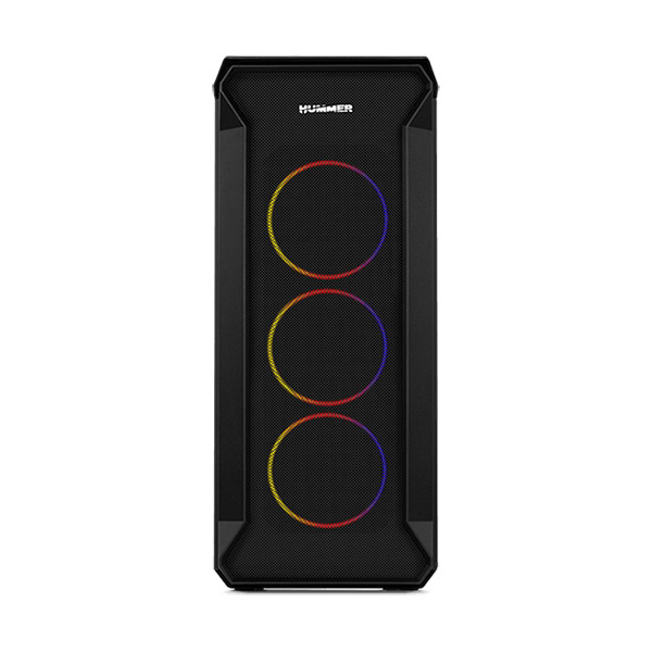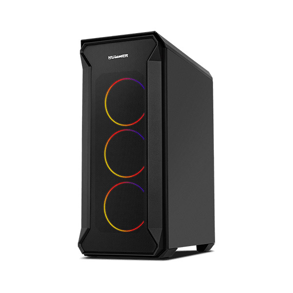 Hummer Quantum est un châssis robuste avec un design original et révolutionnaire qui vous permet de créer des effets de couleurs spectaculaires grâce à ses quatre ventilateurs ARGB de 120 mm préinstallés, parfaitement visibles à travers son panneau latéral en verre trempé.
