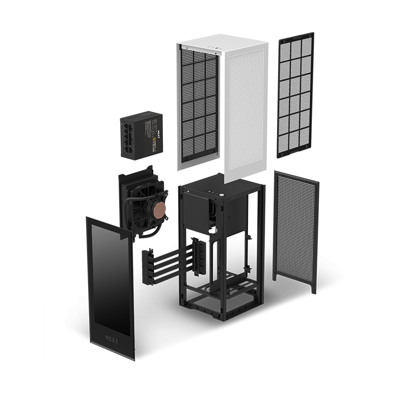 Le H1 est un boîtier à petit facteur de forme sans tracas, avec des câbles pré-acheminés et un câble intégré PSU, AIO et PCIe Gen3 Riser.