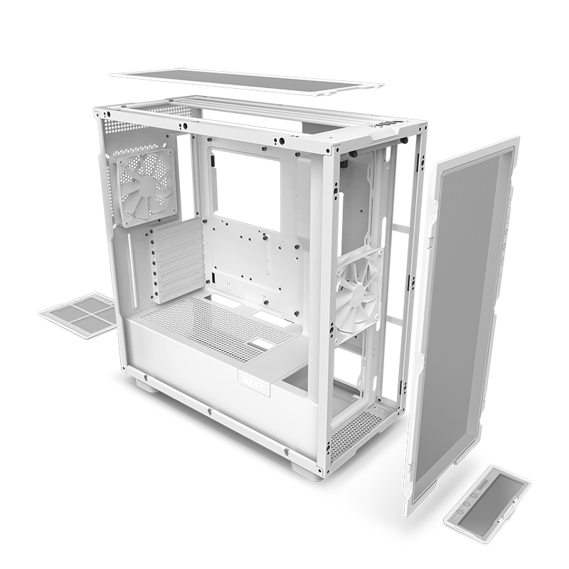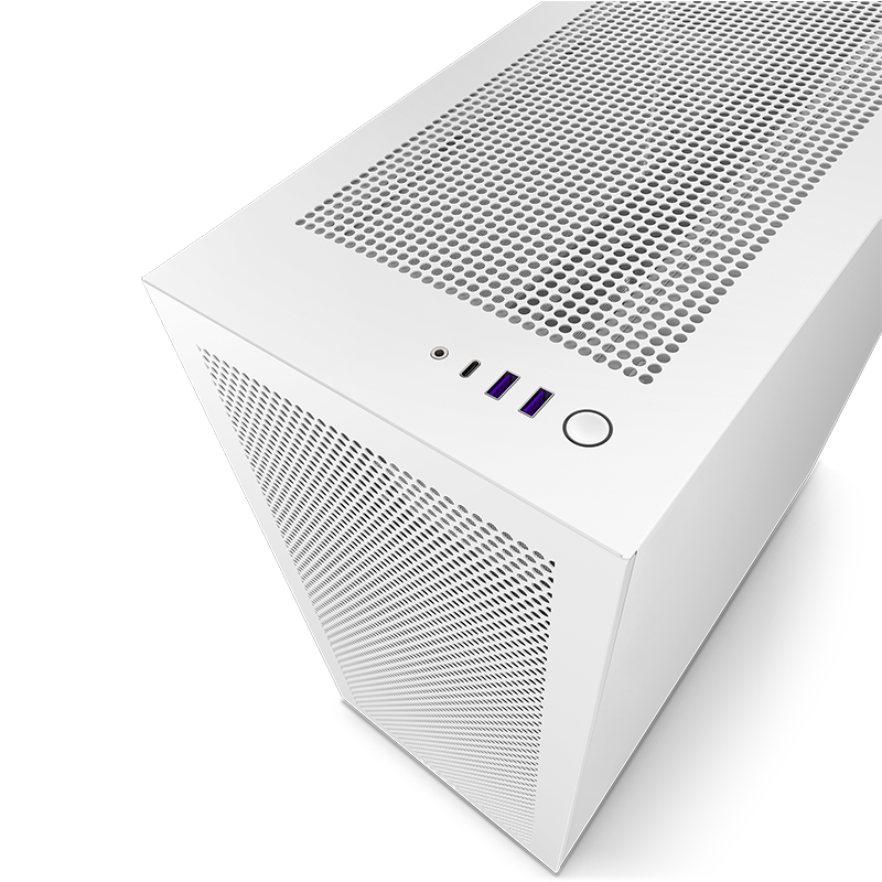 LE NZXT H7 Flow Mid-Tower Airflow Édition White est prêt à apporter la fraîcheur. Doté d’un panneau avant et supérieur perforé, ainsi que de canaux élargis, de crochets, de sangles et d’une entrée sans outil, cet étui élégant gardera n’importe quelle construction fraîche et confortable tout en offrant beaucoup d’espace.