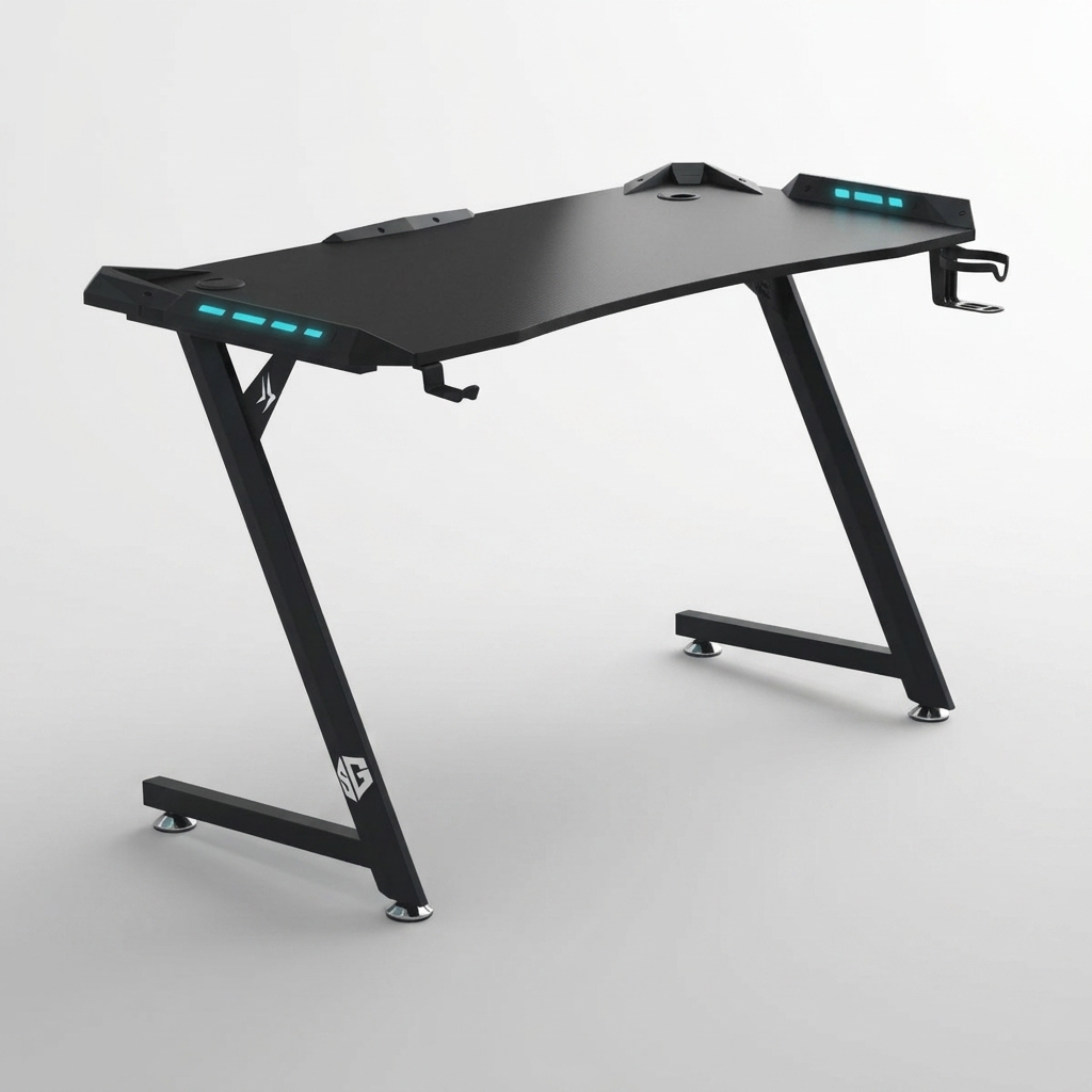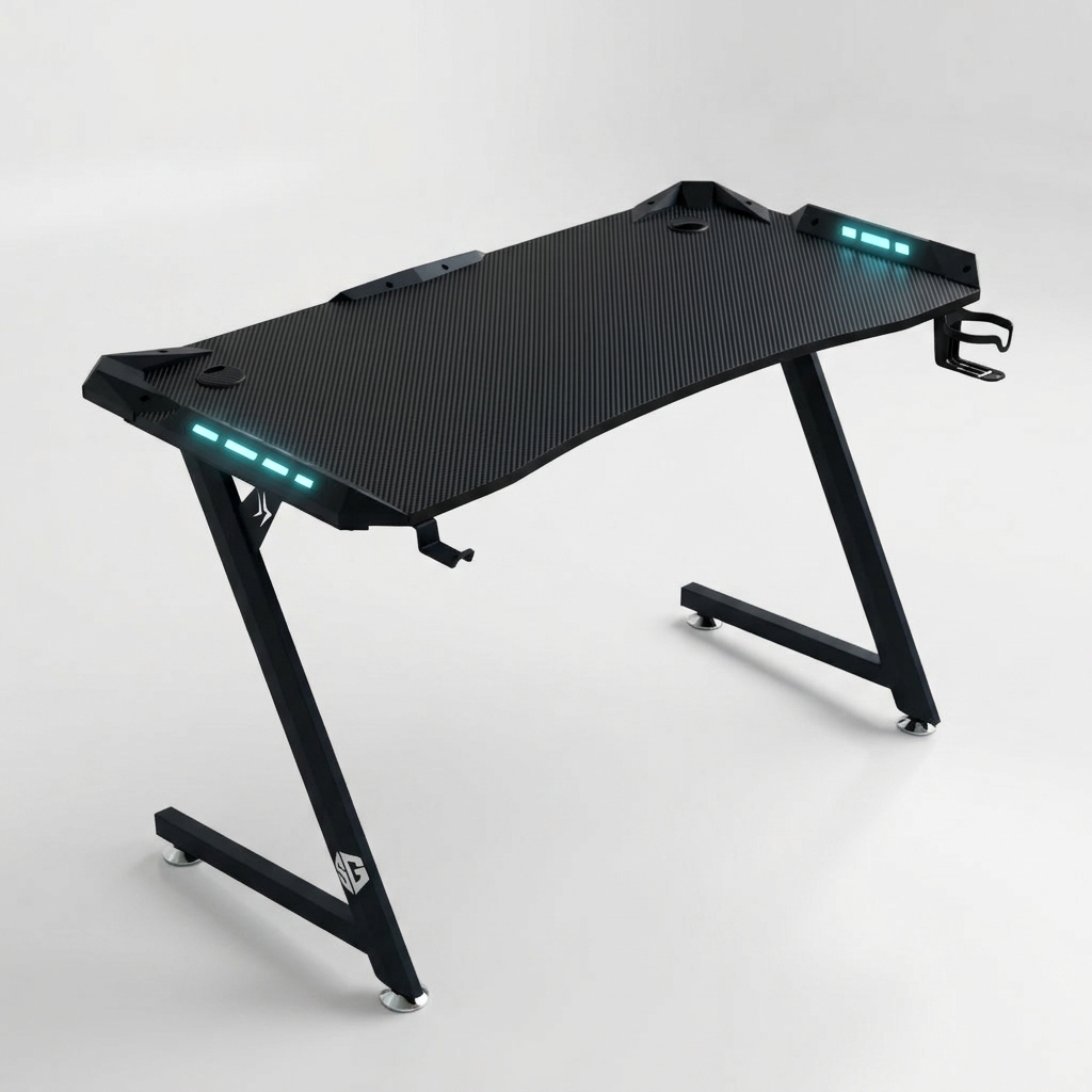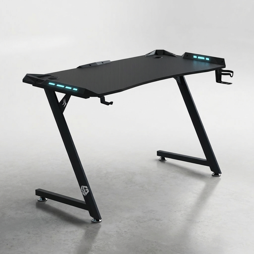 Le Bureau Gamer SG CARBONE Z est une pièce maîtresse alliant design agressif et stabilité structurelle absolue. Avec son plateau spacieux de 140 cm, il offre une surface généreuse pour organiser vos écrans et périphériques gaming. Sa signature visuelle est marquée par sa structure en Z robuste, offrant une esthétique futuriste tout en libérant un espace optimal pour vos jambes, idéal pour les longues sessions devant votre PC Gamer.