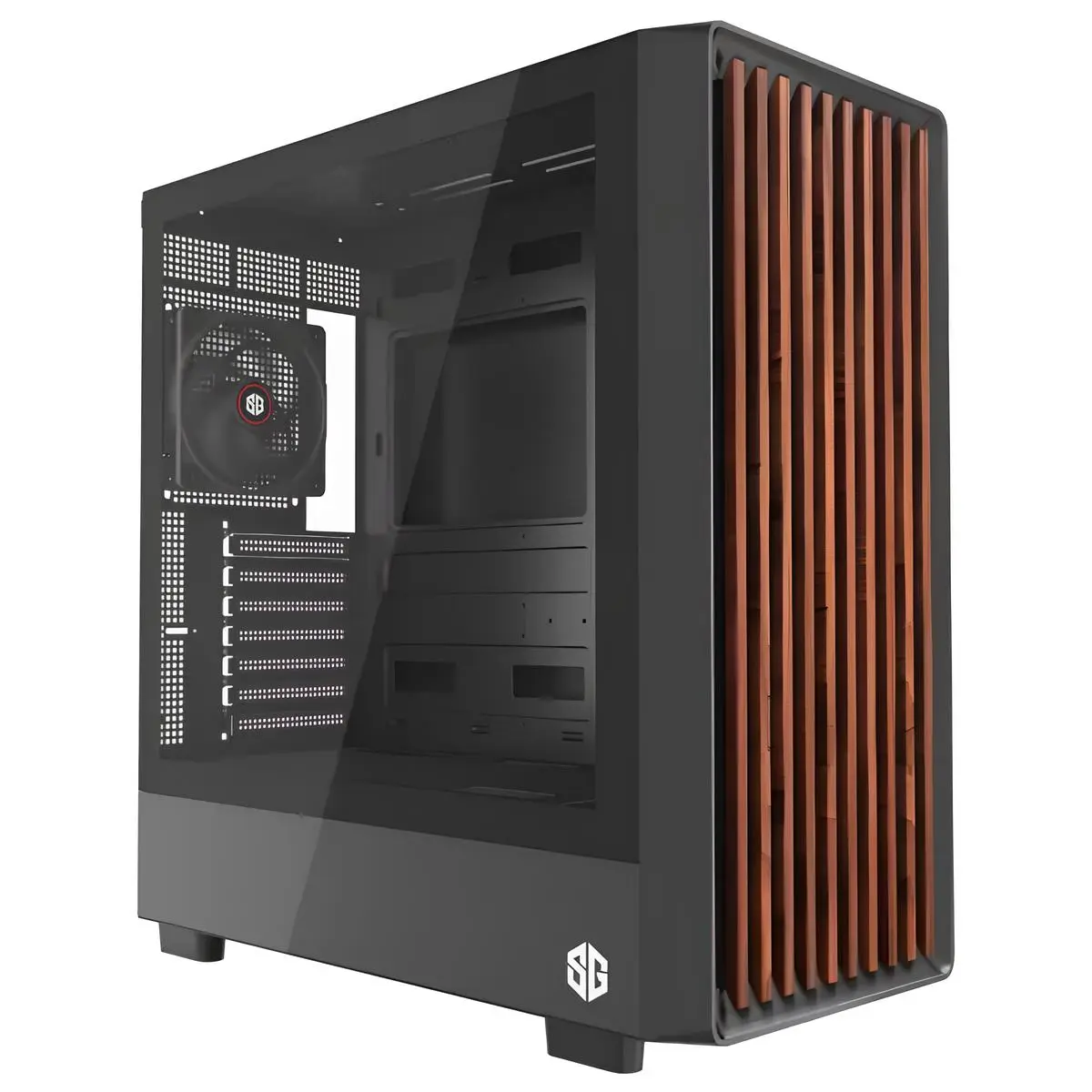 Le **boîtier PC SG WOOD 4 FAN NOIR** est une solution de choix pour les gamers, les créateurs de contenu et les professionnels qui recherchent un équilibre parfait entre un design moderne, une robustesse sans compromis et un refroidissement optimal. Conçu pour accueillir une configuration puissante, ce boîtier moyen tour offre une esthétique soignée et une fonctionnalité avancée pour une expérience d’assemblage et d’utilisation de qualité.