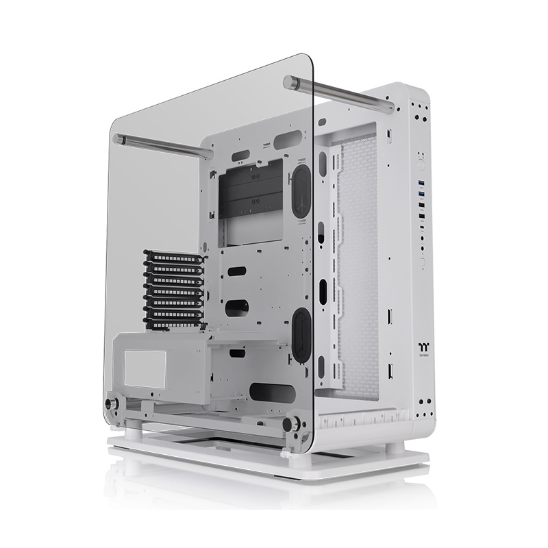 Le Core P6 TG Snow a une excellente extensibilité qui aide les utilisateurs à créer une solution thermique complète. Il peut prendre en charge jusqu’à une carte mère CEB, un refroidisseur de processeur d’une hauteur maximale de 180 mm, des emplacements VGA bidirectionnels d’une longueur maximale de 458 mm (sans radiateur), une alimentation d’une longueur maximale de 200 mm et jusqu’à huit SSD 2,5″ ou quatre disques durs 3,5″. En ce qui concerne les solutions de refroidissement, le Core P6 TG est optimisé pour le refroidissement par air et les composants avancés de refroidissement liquide AIO/DIY. Vous pouvez héberger jusqu’à treize ventilateurs de 120 mm ou huit ventilateurs de 140 mm au total. De plus, le boîtier peut accueillir des radiateurs de 360 mm ou 280 mm à l’avant, en haut et à droite de la carte mère. Avec l’extension matérielle remarquable et la prise en charge du refroidissement liquide, le Core P6 TG Snow offre aux utilisateurs des possibilités infinies de construire la machine de leurs rêves.