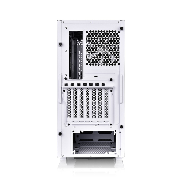 Les performances de refroidissement du Divider 300 TG Air Snow sont excellentes. Le panneau avant en maille et l’évent entre les deux pièces triangulaires en verre trempé et les panneaux en acier sur le côté gauche permettent une entrée d’air optimale. Les échappements de refroidissement sont situés à l’arrière du boîtier. Sur les côtés supérieur et droit, il y a des mécanismes de ventilation pour l’admission ou l’échappement d’air qui dépendent de la conception globale de l’agencement du PC de l’utilisateur.