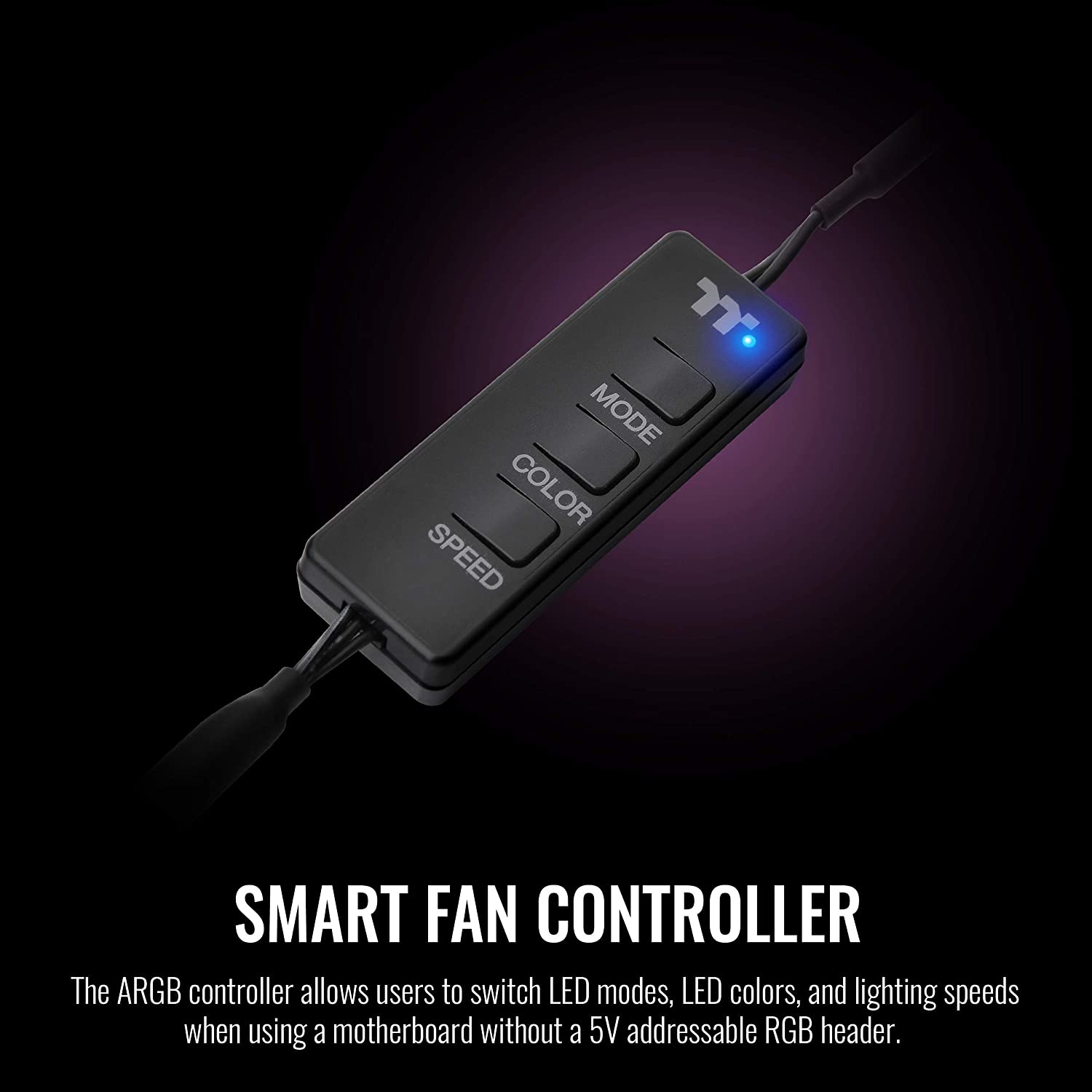 Le contrôleur ARGB permet aux utilisateurs de changer les modes LED, les couleurs LED et les vitesses d’éclairage lors de l’utilisation d’une carte mère sans en-tête RVB adressable 5V. Les utilisateurs peuvent basculer entre les modes flux, ondulation, impulsion, clignotement, vague, pleine lumière, spectre RVB et arrêt avec différentes couleurs et options de vitesse LED.