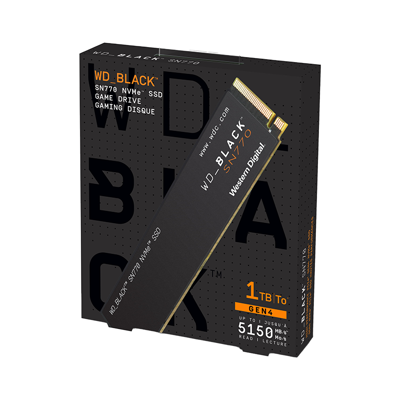 SSD WD Black SN770 1 To NVMe PCIe 4.0. Vitesse jusqu’à 5150 Mo/s. Performance gaming ultime, chargements rapides et fiabilité Western Digital pour votre PC.